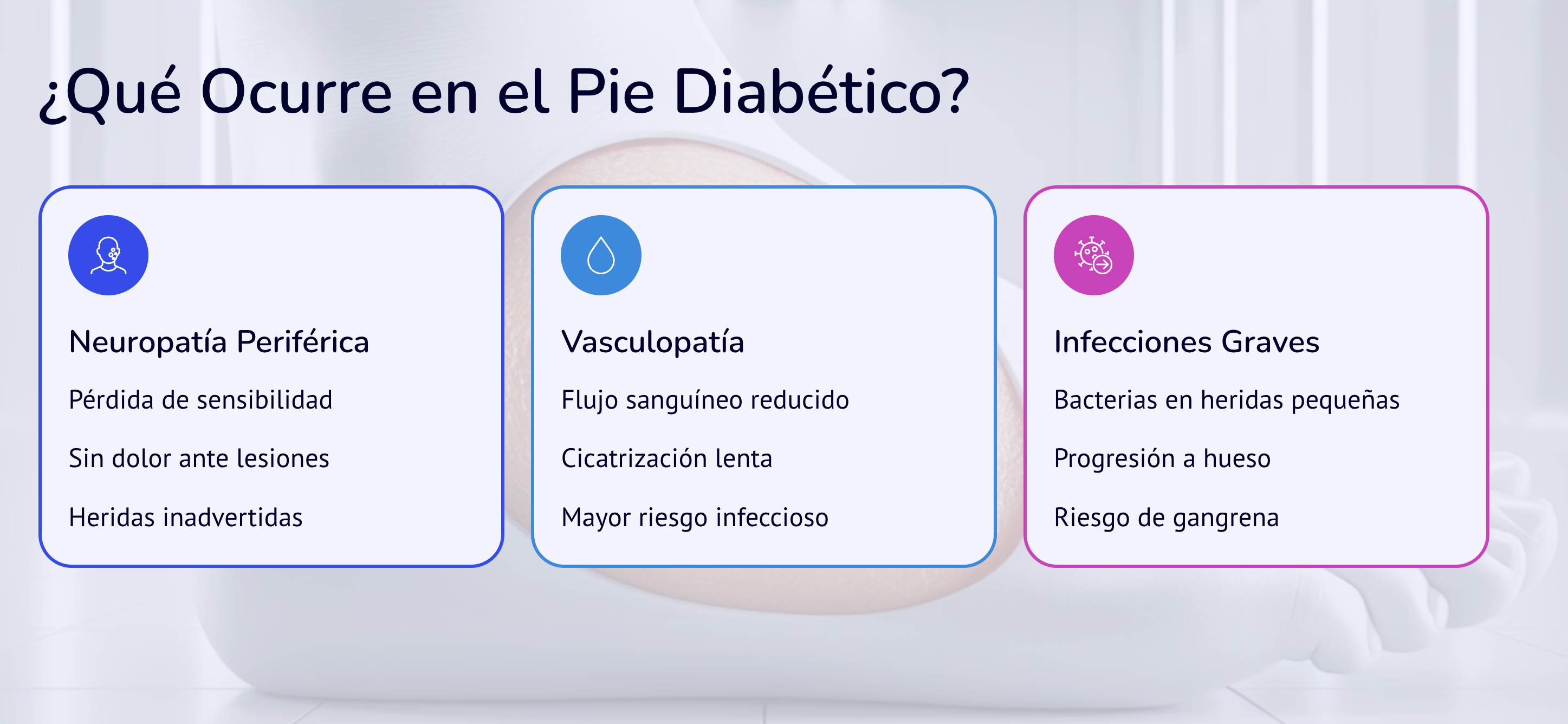 Las consecuencias del pie diabético pueden ser muy graves si no se detecta y trata oportunamente. Se originan principalmente por la combinación de neuropatía, mala circulación e infecciones. Aquí tienes un resumen claro y profesional: