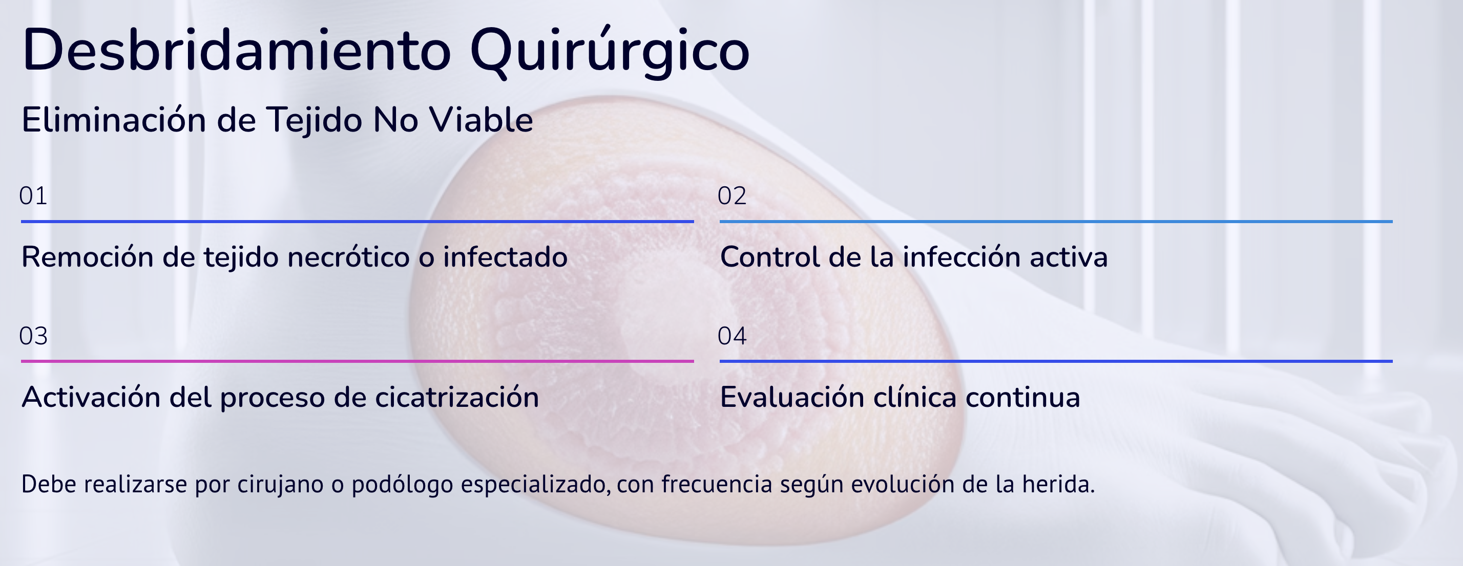 Resultado → Heridas más estables y menor riesgo de re-ulceración.