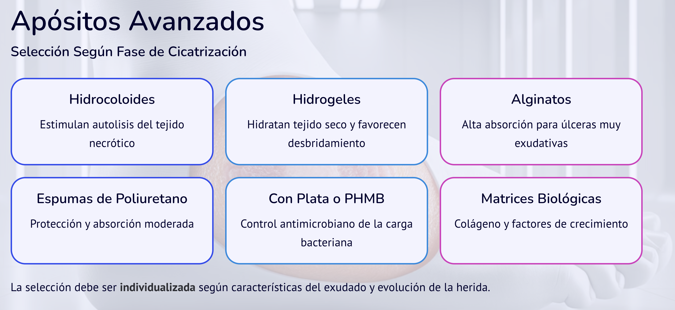 Selección individualizada según evolución de la herida.