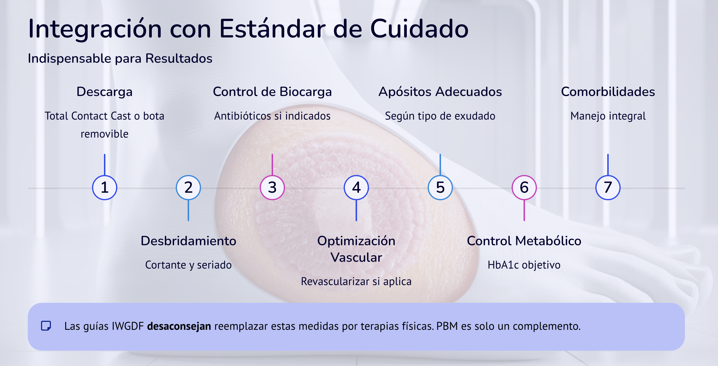 * Mantener estándar de cuidado IWGDF como base.