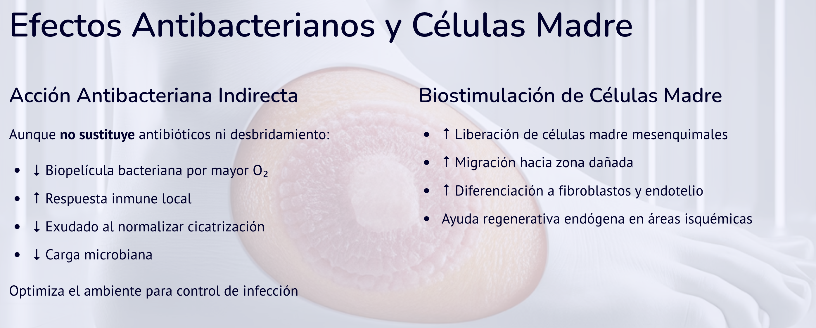 Aunque no sustituye antibióticos ni desbridamiento: