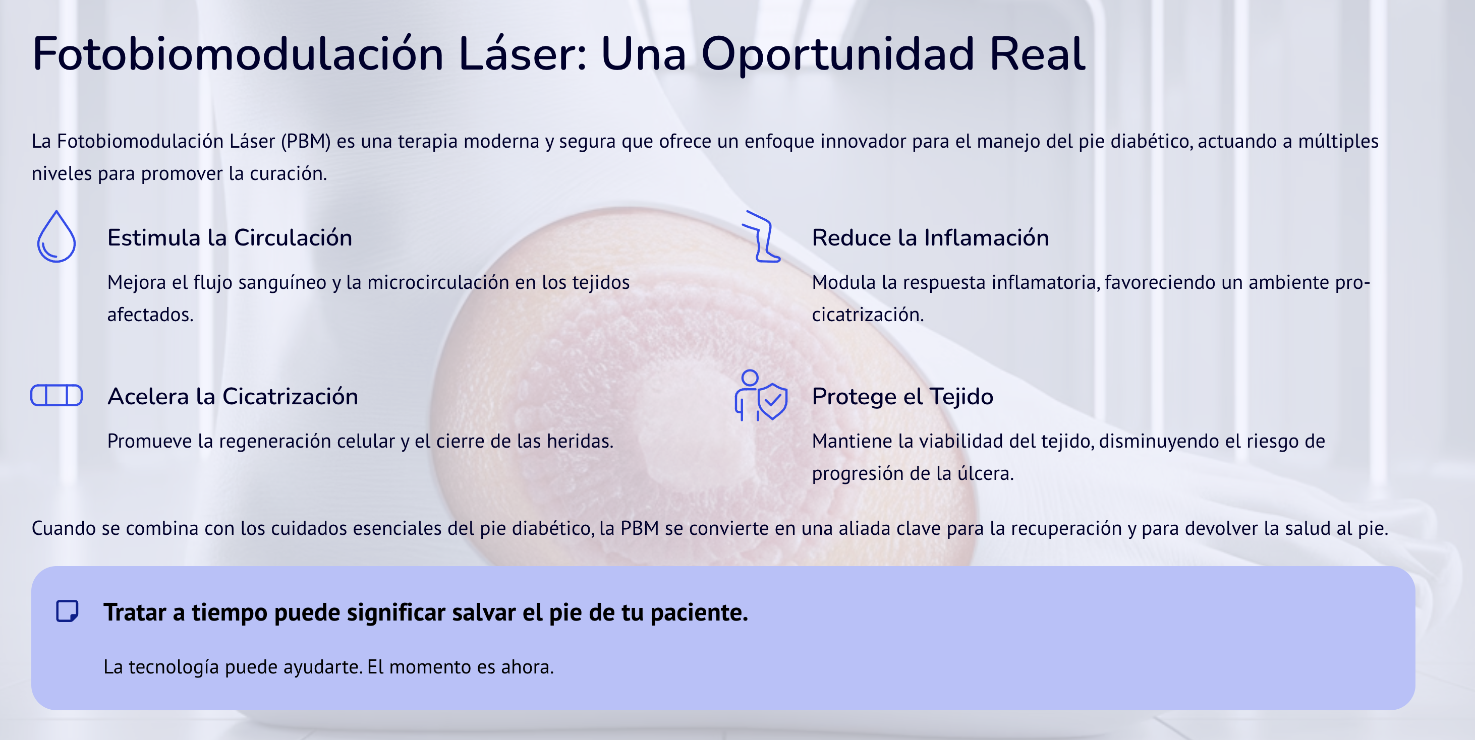 Fotobiomodulación Láser (PBM) como adyuvante en el pie diabético